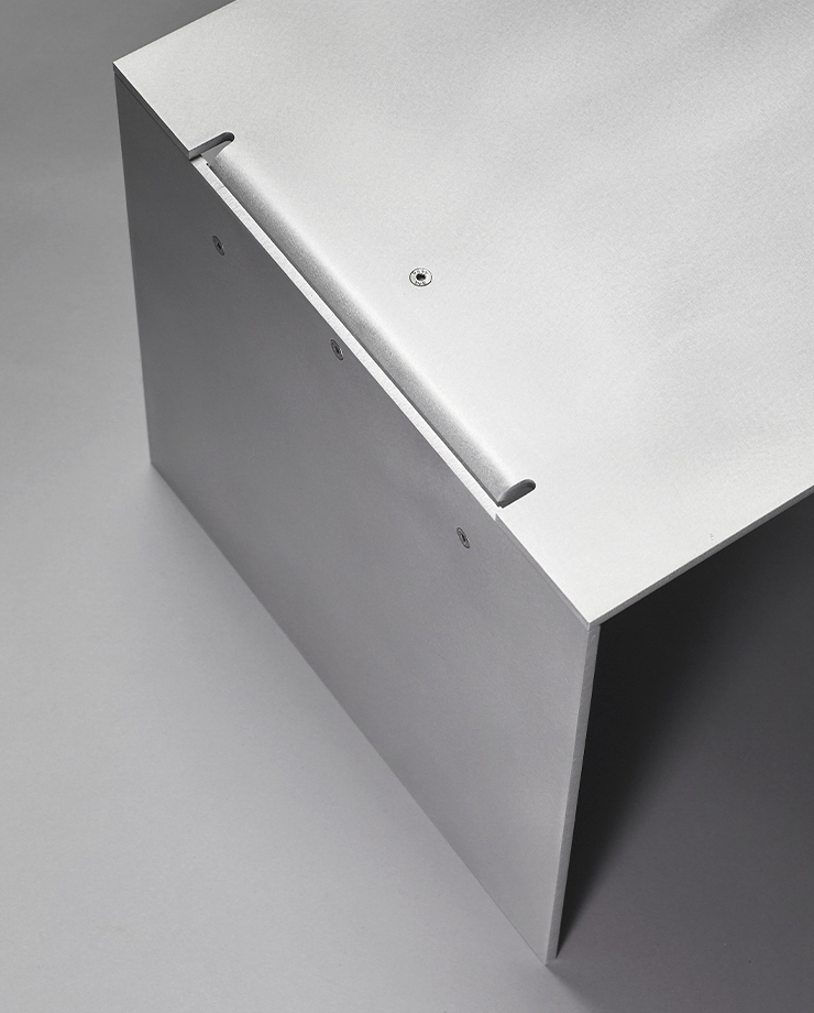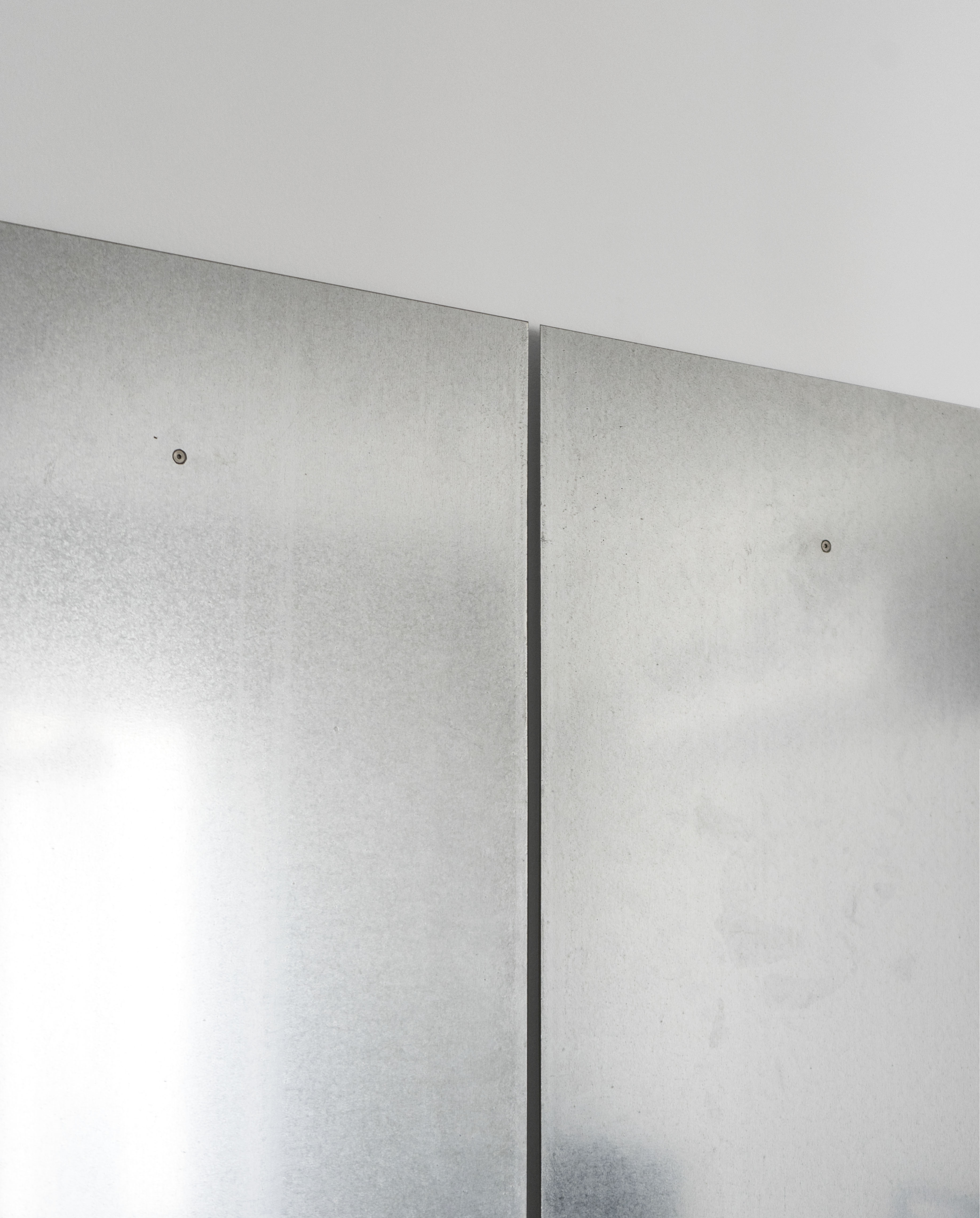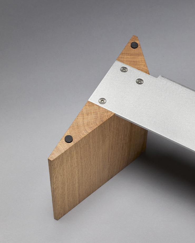 A hidden structure carries seamlessly a shelving unit, that can evolve depending the projects and exhibitions of the studio.
